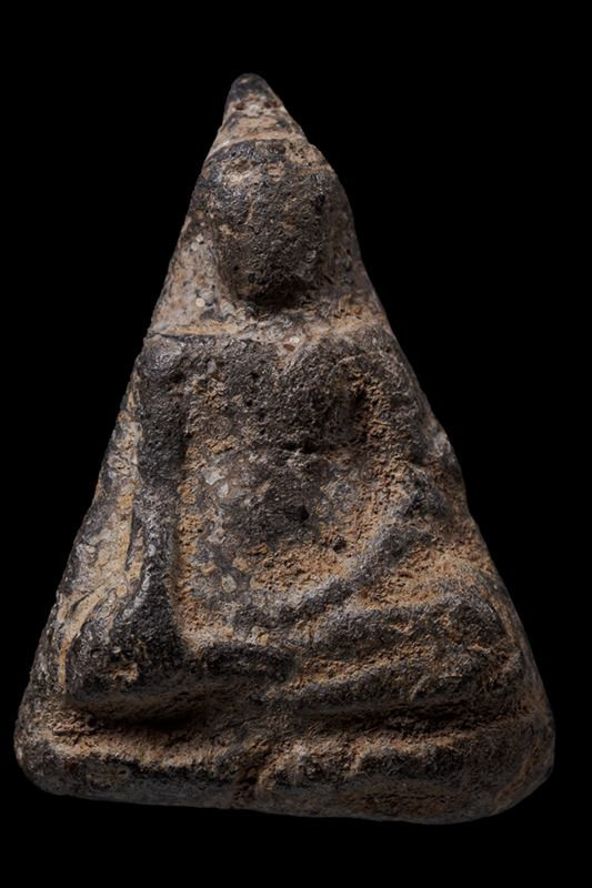 พระหัวใจกำแพงเนื้อดินกดเดี่ยว เตาทุเรียง เนื้อดำไม่หักไม่ซ่อมรับประกันแท้ พิมพ์ใหญ่ |