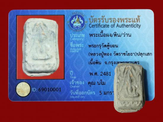พระขุนเเผนกรุวัดพระรูปเนื้อดินพิมพ์ไข่ผ่าซีก จ.สุพรรณบุรี มาพร้อมบัตรรับรอง |