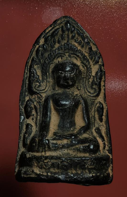 พระเนื้อผงชุบรักเก่า หลังฝังตระกรุดเก่าไม่ทราบที่ เคาะเดียวแดง |