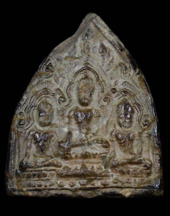 พระกรุวัดนก เนื้อเขียว - ยุคต้นนิยม พิมพ์ฐาน 3ชั้น หลวงปู่ศุข วัดปากคลองมะขามเฒ่าปลุกเสก + บัตรรับรอง G-Pra |