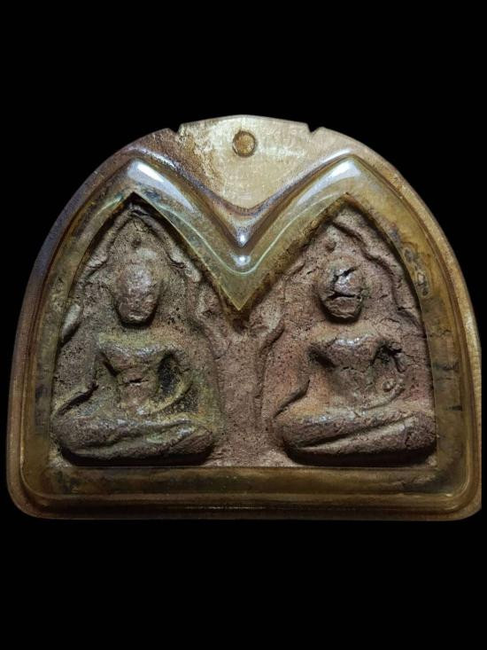ขุนแผน กรุวัดบ้านกร่าง พลายคู่ตัดเดี่ยว พิมพ์หน้ามงคลกลาง จ.สุพรรณบุรี พร้อมตลับอิตาลี (สวย) |