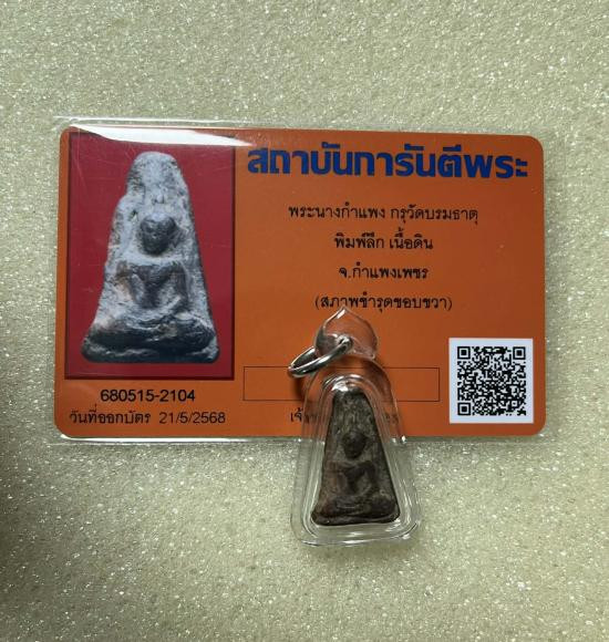 วัดใจ พระนางกำแพง กรุลานทุ่งเศรษฐี พิมพ์ตื้น เนื้อดิน จ.กำแพงเพชร พร้อมบัตรรับรองจากจีพระ |