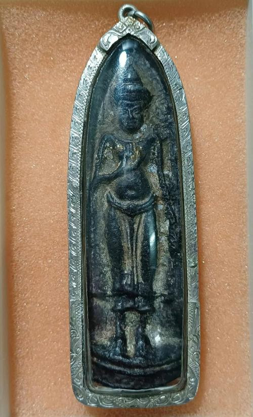 วัดใจ พระลีลา กรุวัดพระศรีรัตนมหาธาตุ เนื้อชินเงิน จ.สุพรรณบุรี เลี่ยมเงินพร้อมใช้ พร้อมบัตรรับรองจากจีพระ |