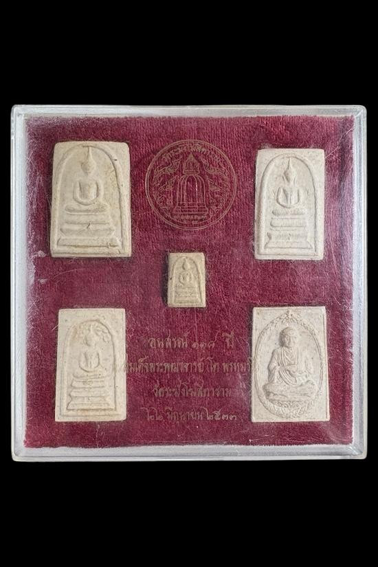 -วัดใจ100ทุกรายการ- ชุดกล่อง พระสมเด็จ อนุสรณ์ 118 ปี สมเด็จพระพุฒาจารย์ (โต พฺรหฺมรํสี) วัดระฆังโฆสิตารามวรมหาวิหาร กรุงเทพมหานคร ปี 2533 เนื้อผงพุทธคุณ จำนวน 5 องค์ กล่องเดิมสมบูรณ์ดี |