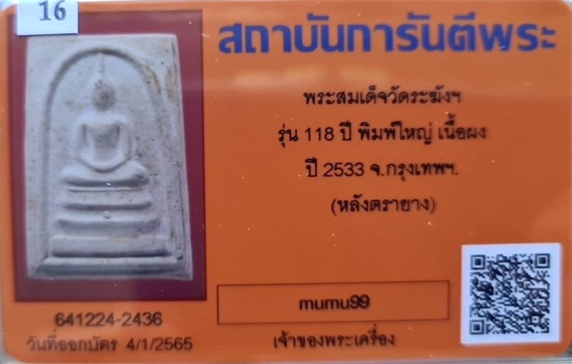 ## สมเด็จวัดระฆัง อนุสรณ์ 118ปี พ.ศ.2533 พิมพ์ใหญ่ "พระสวยเดิมไม่ผ่านการใช้.หลังปั้มตรายาง...พร้อมบัตรรับรอง.""รับประกันแท้ตลอดฃีพและแท้ตามมาตรฐานสากล....... อนาคตดี ถูกๆเลยครับ.... ราคายังไม่แรง....ไ |