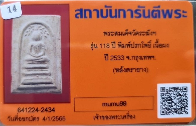 พระสมเด็จวัดระฆังหลังฆ้อน ยุคต้น สภาพเดิม ผิวเดิม พร้อมบัตรรับรอง |