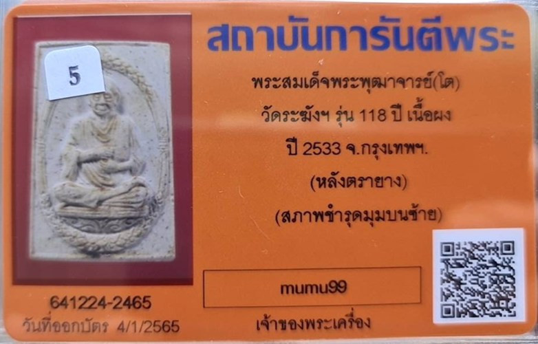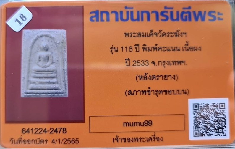 วัดใจ40 พระสมเด็จวัดระฆัง 100ปี พิมพ์ใหญ่หลังตรายาง ปี2515 บัตรg pra (ลงใหม่ครับ) |