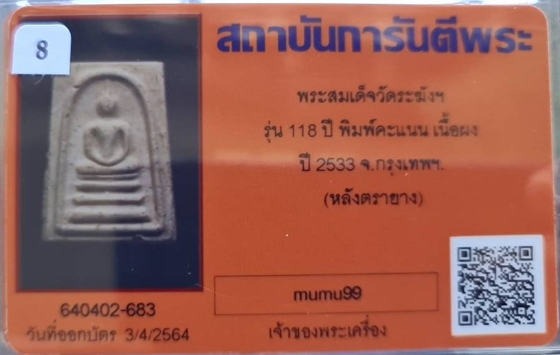 ## สมเด็จวัดระฆัง อนุสรณ์ 118ปี พ.ศ.2533 พิมพ์ใหญ่ "พระสวยเดิมไม่ผ่านการใช้.หลังปั้มตรายาง...พร้อมบัตรรับรอง.""รับประกันแท้ตลอดฃีพและแท้ตามมาตรฐานสากล....... อนาคตดี ถูกๆเลยครับ.... ราคายังไม่แรง....ไ |