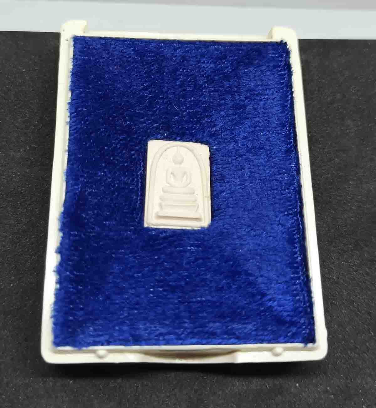 พระสมเด็จหลวงพ่อกวย พิมพ์เล็ก รุ่นผูกพัทธสีมา เนื้องาแกะ ปี 2521 พร้อมบัตรรับรอง |
