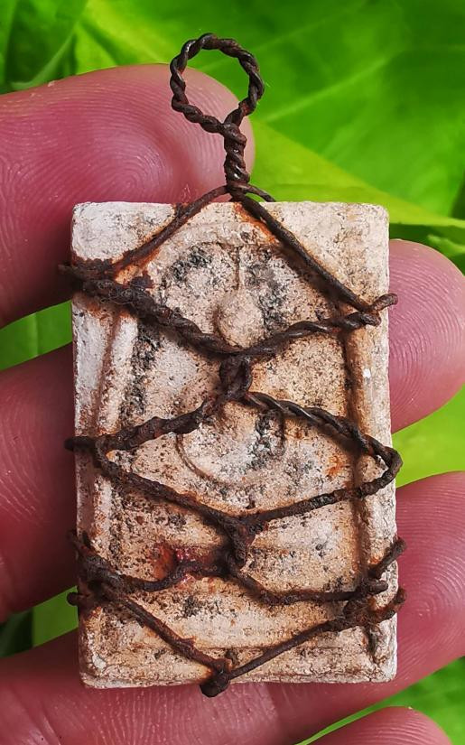 พระสมเด็จ "พิมพ์หูยานขาสิงห์" หลวงปู่นาค ยุคหลัง เนื้อผงใบลาน มีคราบกรุ |