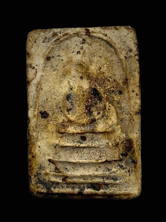 พระสมเด็จ "พิมพ์หูยานขาสิงห์" หลวงปู่นาค ยุคหลัง เนื้อผงใบลาน มีคราบกรุ |