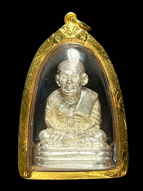 รูปเหมือนหลวงปู่ทวด วัดช้างให้ รุ่นกฐิน 42 พิมพ์เบตง เนื้อเงิน ปี 2542 จ.ปัตตานี พร้อมเลี่ยมกรอบทองคำ |