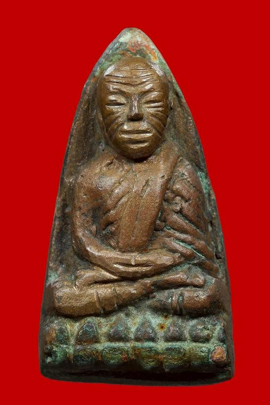 หลวงพ่อทวด วัดช้างให้ หลังเตารีดใหญ่ พิมพ์ซี หัวแหลม เนื้อโลหะผสม( เนื้อแดง ) ปี 2505 |