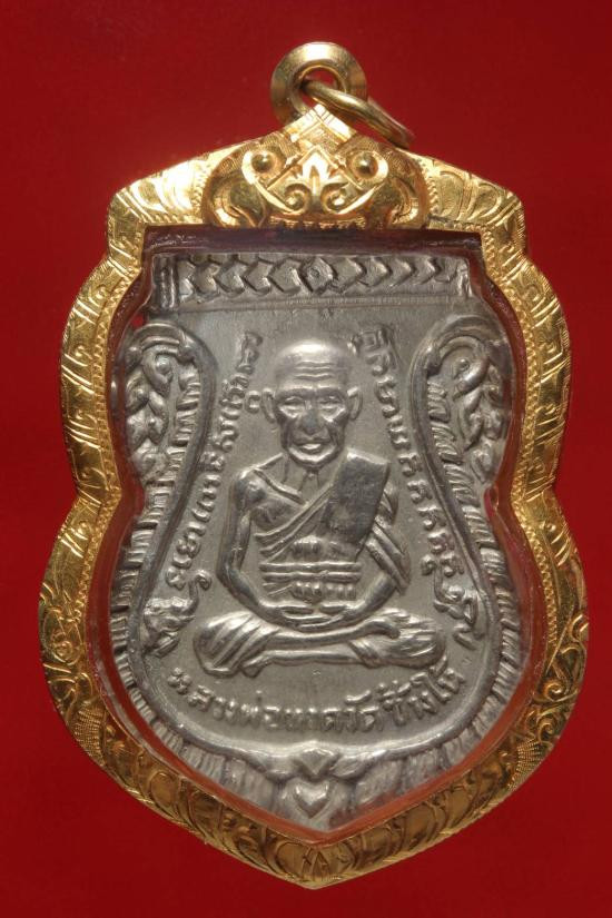 หลวงปู่ทวด วัดช้างให้ รุ่นกฐิน 42 พิมพ์เบตงเลขใต้ฐาน เนื้อเงิน ปี 2542 จ.ปัตตานี พร้อมเลี่ยมกรอบทองคำ จำนวนสร้าง 99 องค์ |