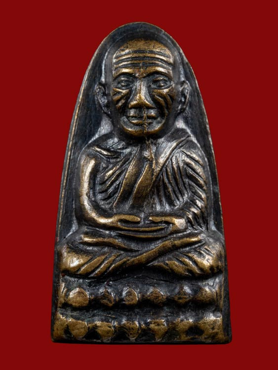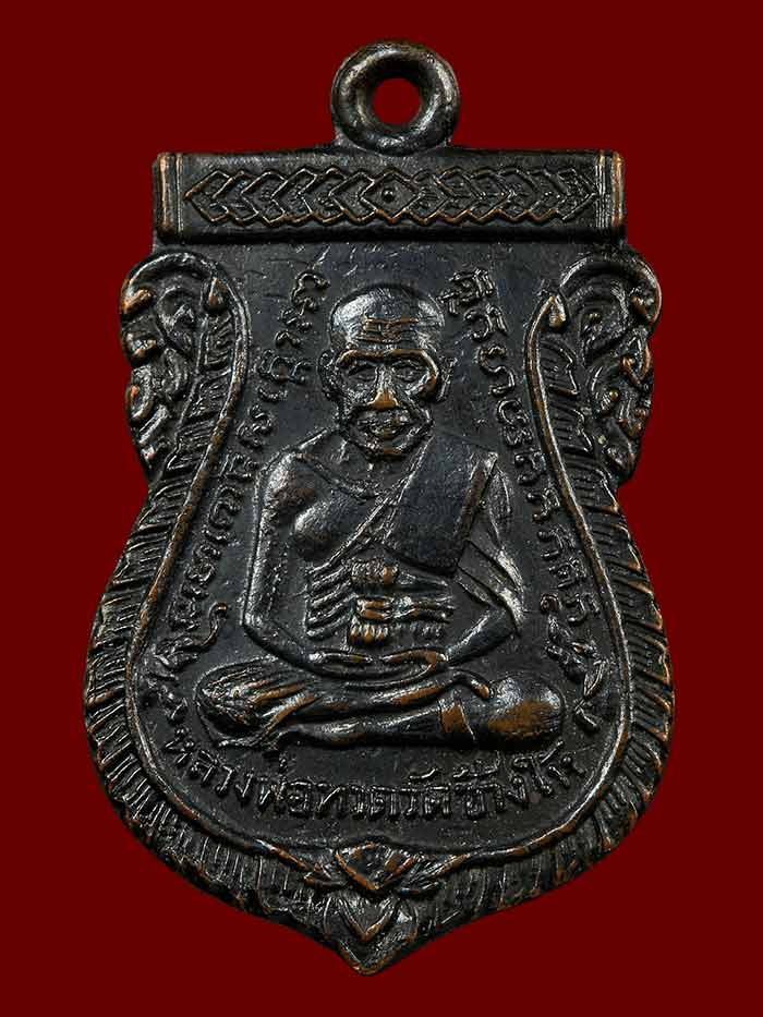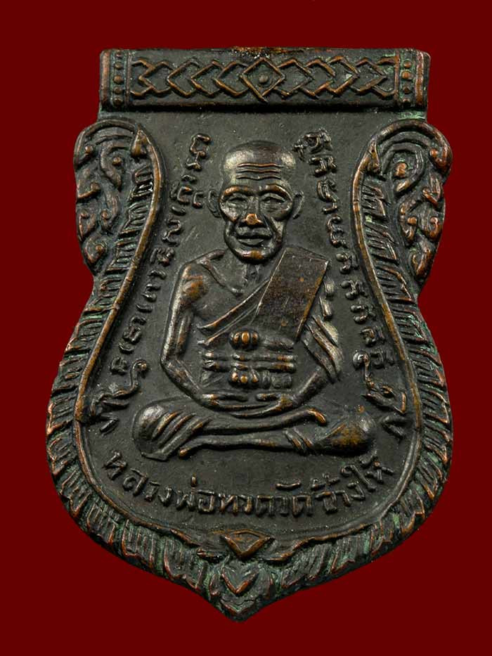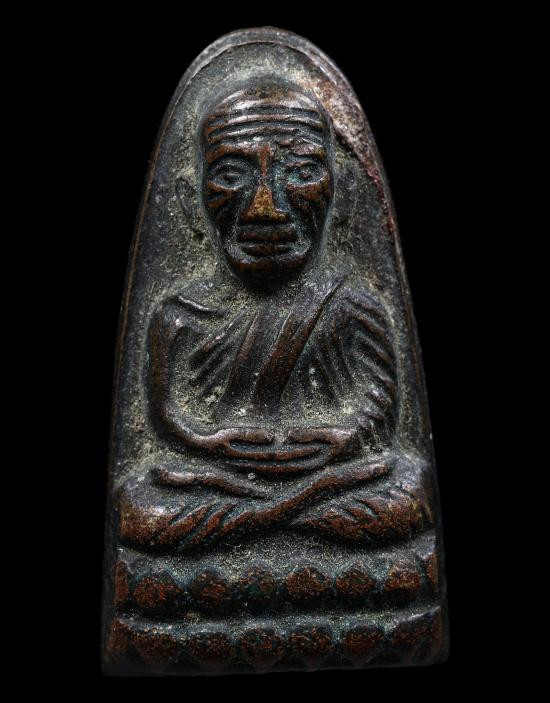 วัดใจ หลวงปู่ทวดพิมพ์เสมาปี04 รุ่น3 เนื้อทองแดงรมดำ บล็อคแขนขีด |