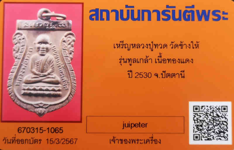 หลวงปู่ทวด วัดช้างให้ พ.ศ.2522 สภาพสวยตามรูป เคาะแรกแดง จัดไป |