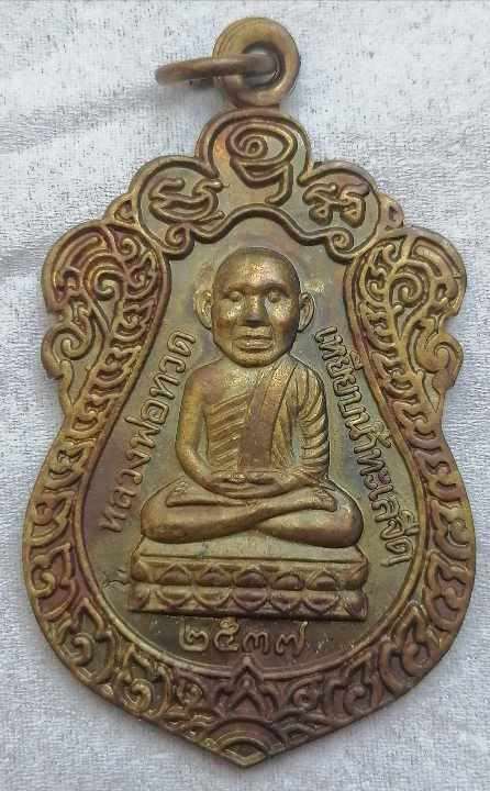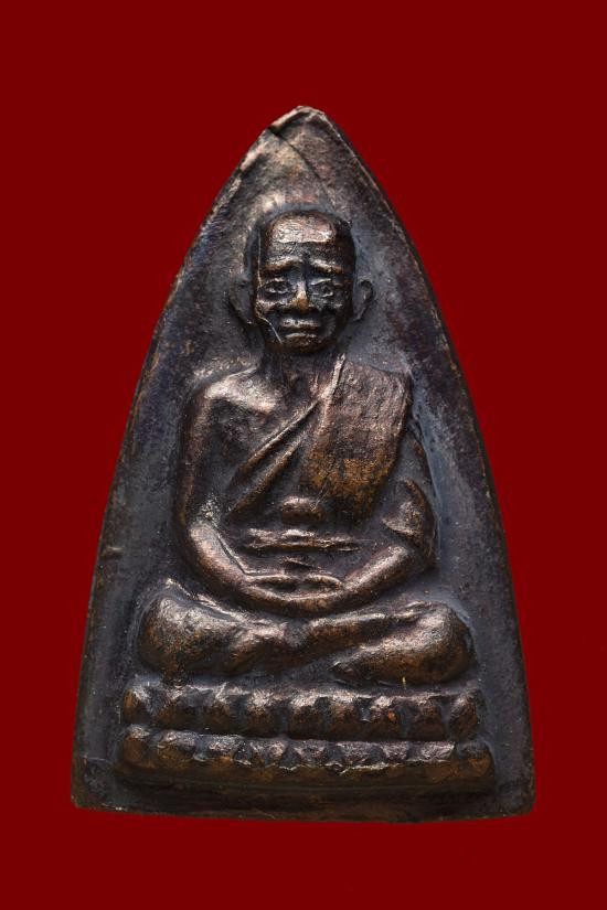 เหรียญหยดน้ำหลวงปู่ทวด วัดช้างให้ ปี 2522 พิมพ์หน้าแก่ เนื้อทองแดงรมน้ำตาล เคาะเดียวแดง |