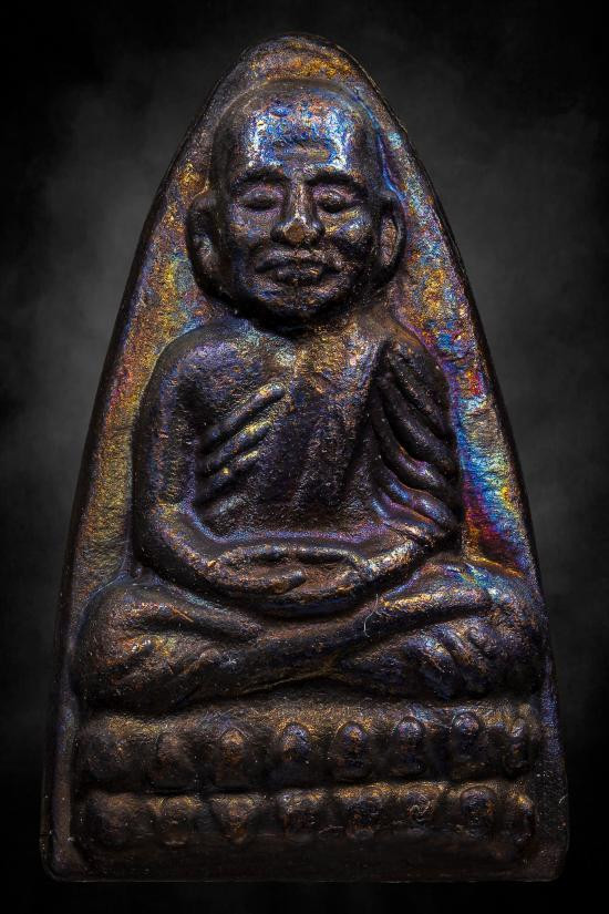 หลวงพ่อทวดปี 2524 เนื้อทองแดงรมดำบล๊อกนิยมหน้าหนูหลังนะหลังสามจุด |