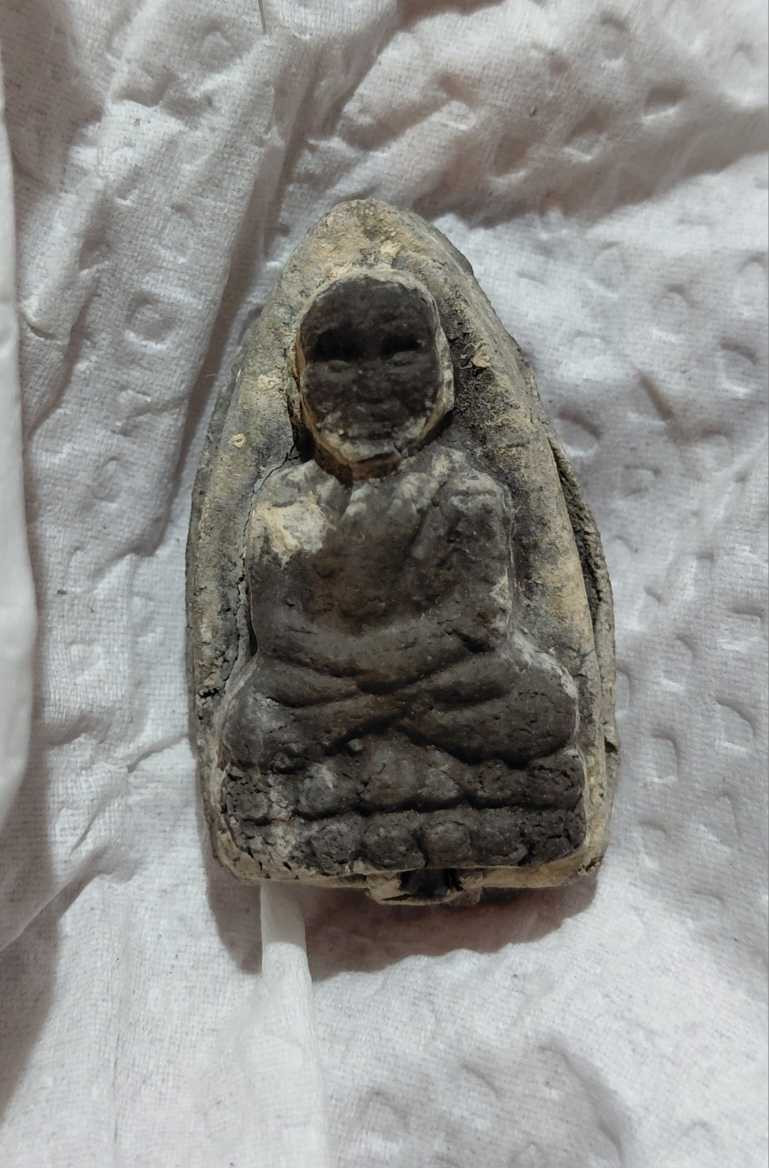 หลวงปู่ทวดวัดห้วยมงคลเนื้อว่านพิมพ์เตารีดใหญ่ หลัง สก. ปี ๒๕๔๔ มาพร้อมกล่องเดิมๆจากวัด |