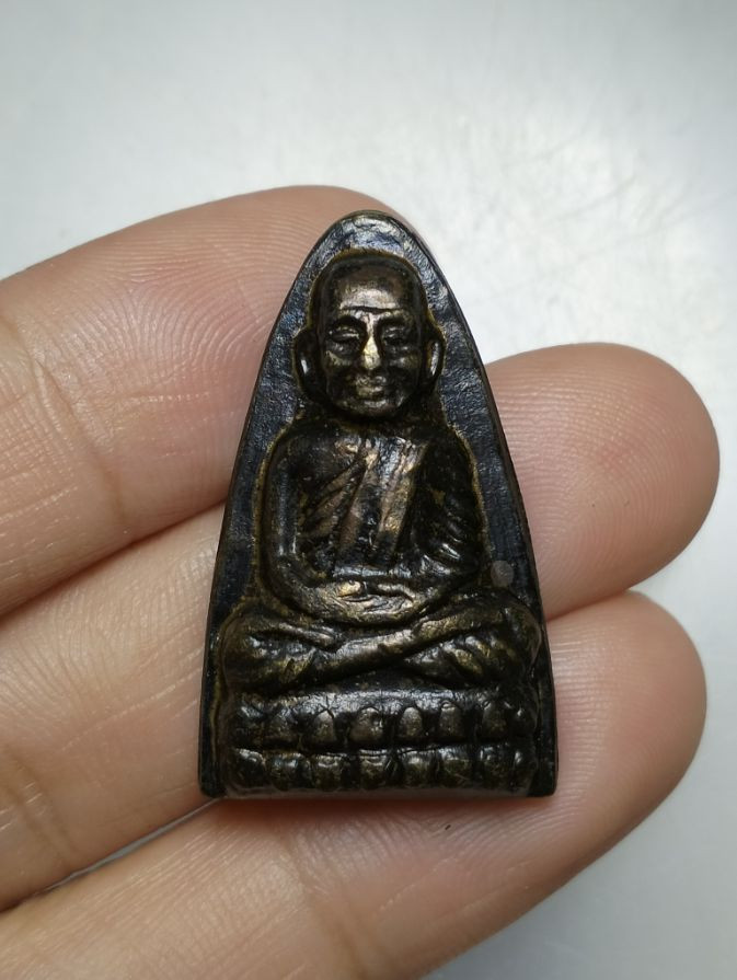 หลวงพ่อทวดหลังหนังสือ วัดช้างให้ ปัตตานี ปี 2524 เนื้อทองแดงรมดำ |