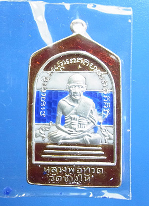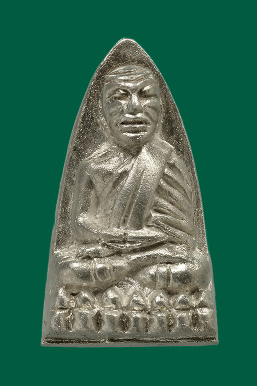 หลวงปู่ทวด หลังเตารีด เล็ก เนื้อเงิน แท้ รุ่นสองบารมี พ่อท่านเขียว วัดห้วยเงาะปัตตานี พ่อท่านแสง วัดบ้านตรังปัตตานี ปี ๒๕๕๗ |