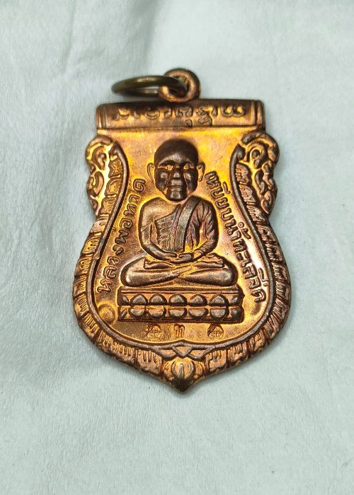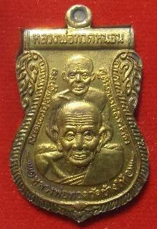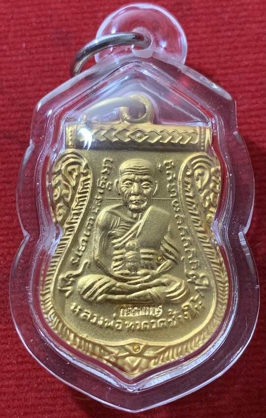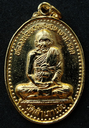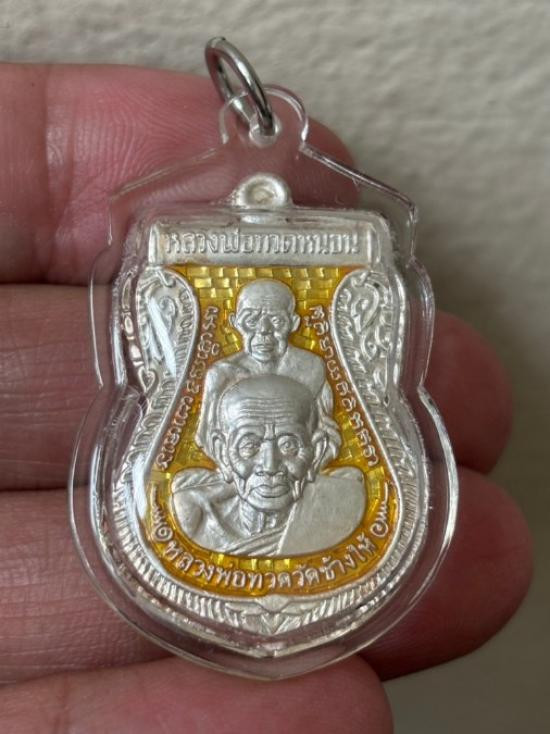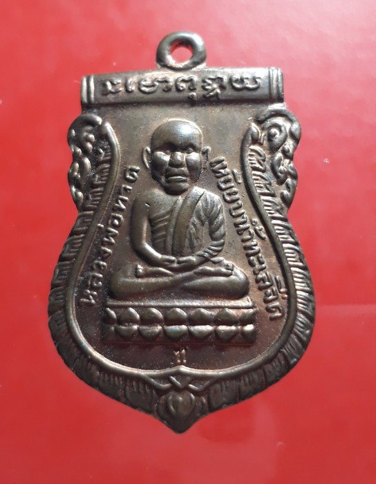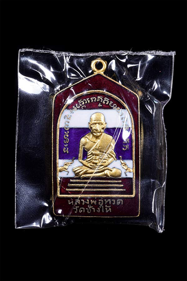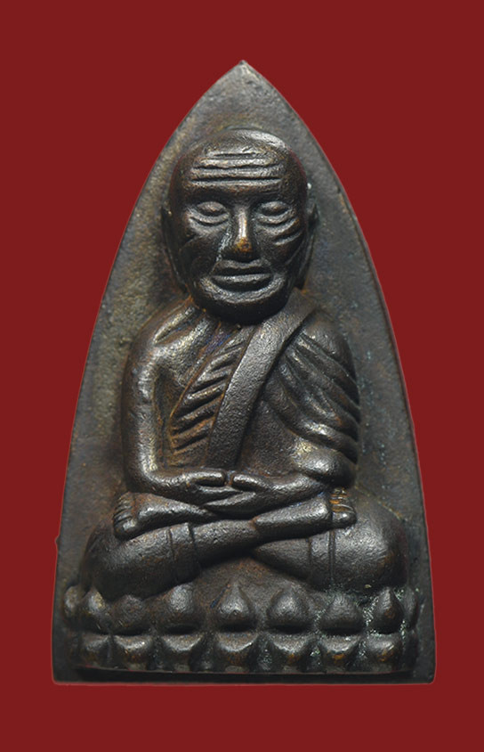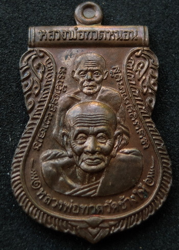 หลวงปู่ทวด รุ่นเลื่อนสมณศักดิ์ อาจารย์ทอง ปี 2545 พิมพ์ตัวด้วง หลังเตารีดหล่อโบราณ |