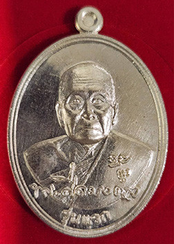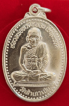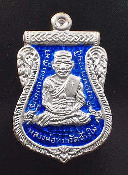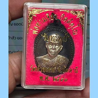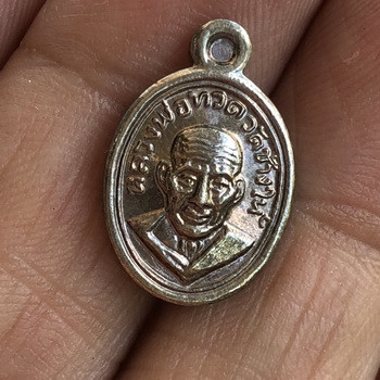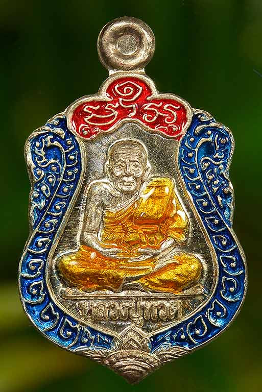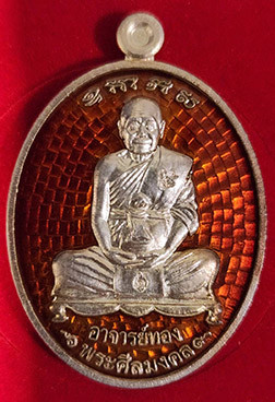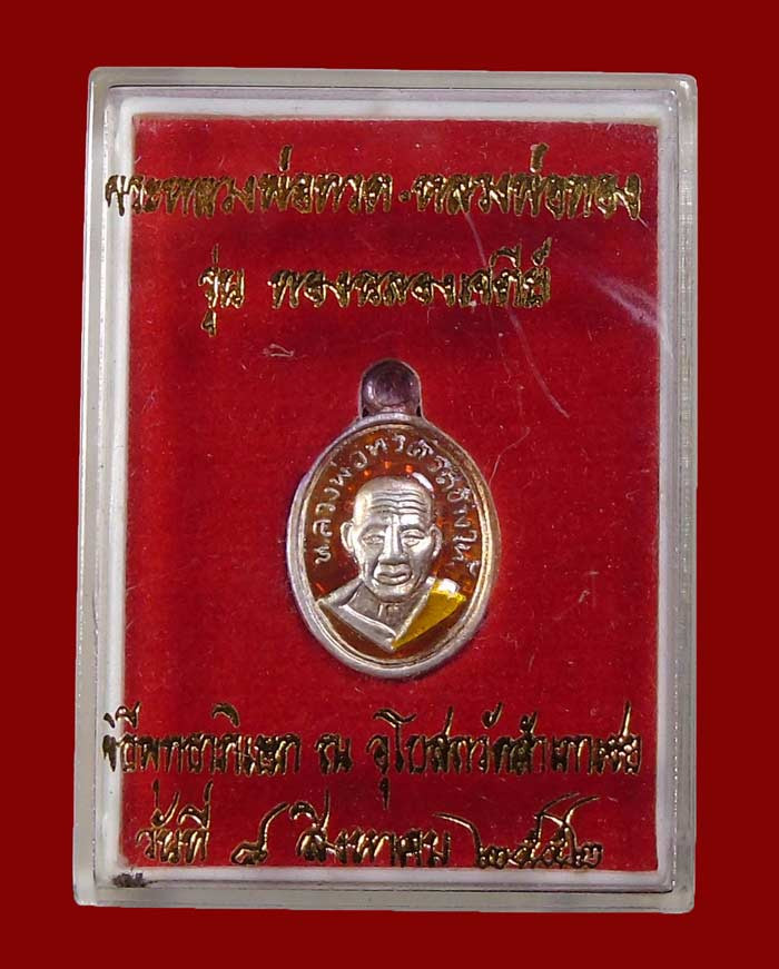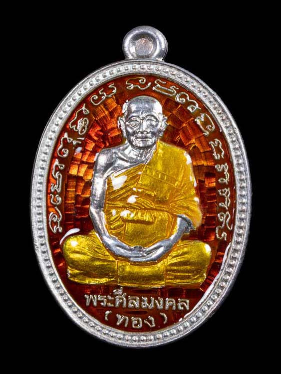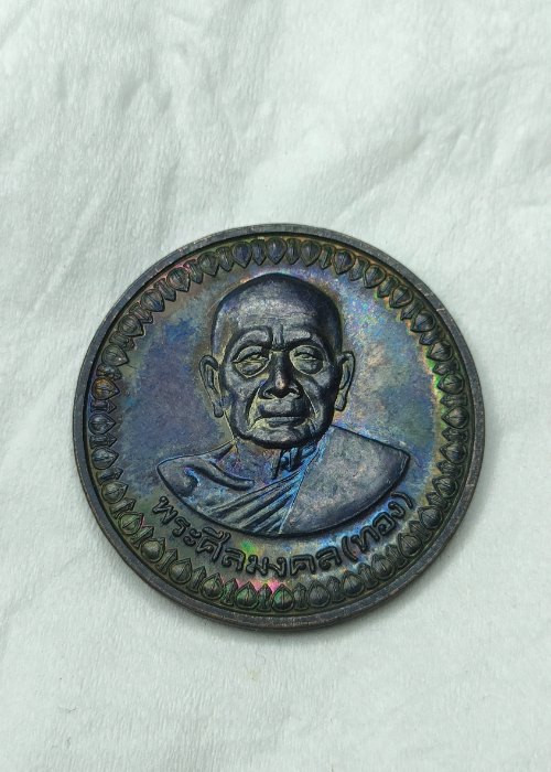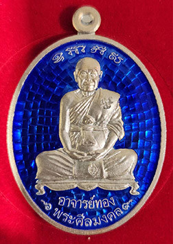 เหรียญหันข้างหลวงพ่อทองรุ่นแรกเนื้อเงินลงยาแดงขอบน้ำเงินตอกโค๊ตตอกเลข8 ปี53 |