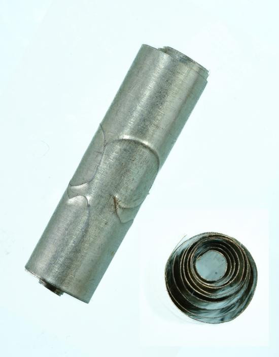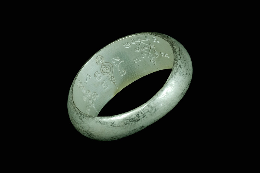 "ตะกรุดนิมิตพิสมร จารตัวนัง" ปี 2545 ของหลวงปู่เขียว (พ่อท่านเขียว) วัดห้วยเงาะ จ.ปัตตานี ซึ่งถือเป็นหนึ่งในเครื่องรางที่สร้างชื่อเสียงให้ท่านจนได้รับฉายา "เทพเจ้าฝ่ายบู๊" อย่างแท้จริง |