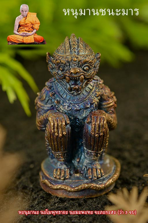 หนุมานชนะมาร พ่อท่านเขียว จากการสร้างเนื้อชนวนอุดผงพราย ขนาด 2.5 ซม เหลือ 28 ตน ตนเลข 9 บน 9 ล่าง |