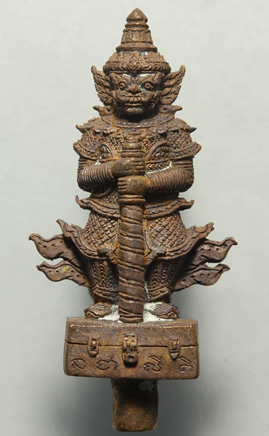 เลข 87 หนุมานชนะมารเนื้อทองแดงชนวน อุดผงพรายกุมาร หลวงปู่เขียว วัดห้วยเงาะ ขนาด ๓ ซม. |