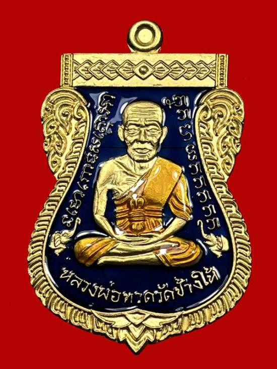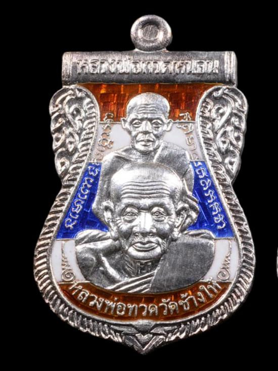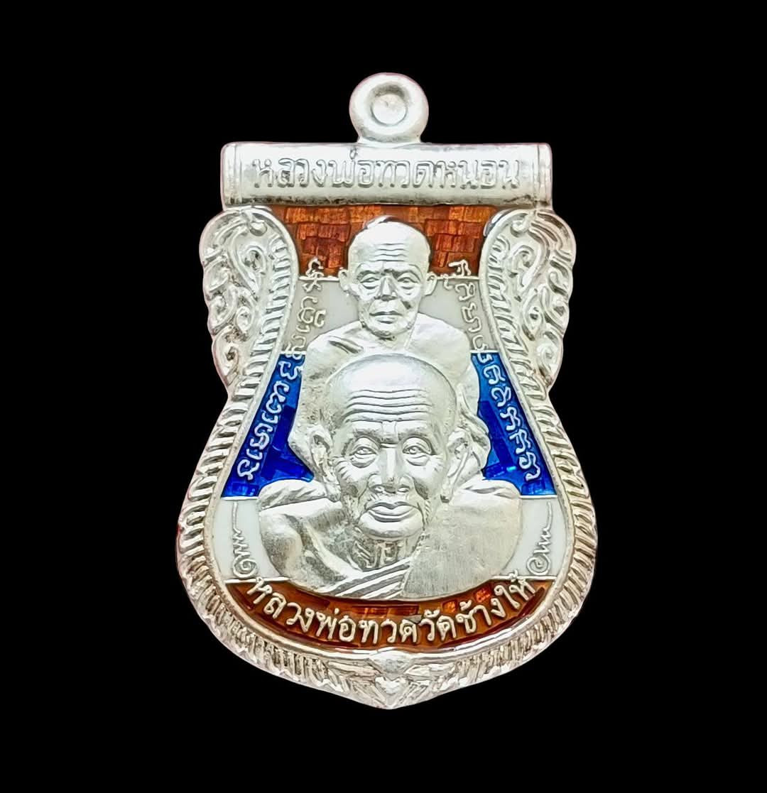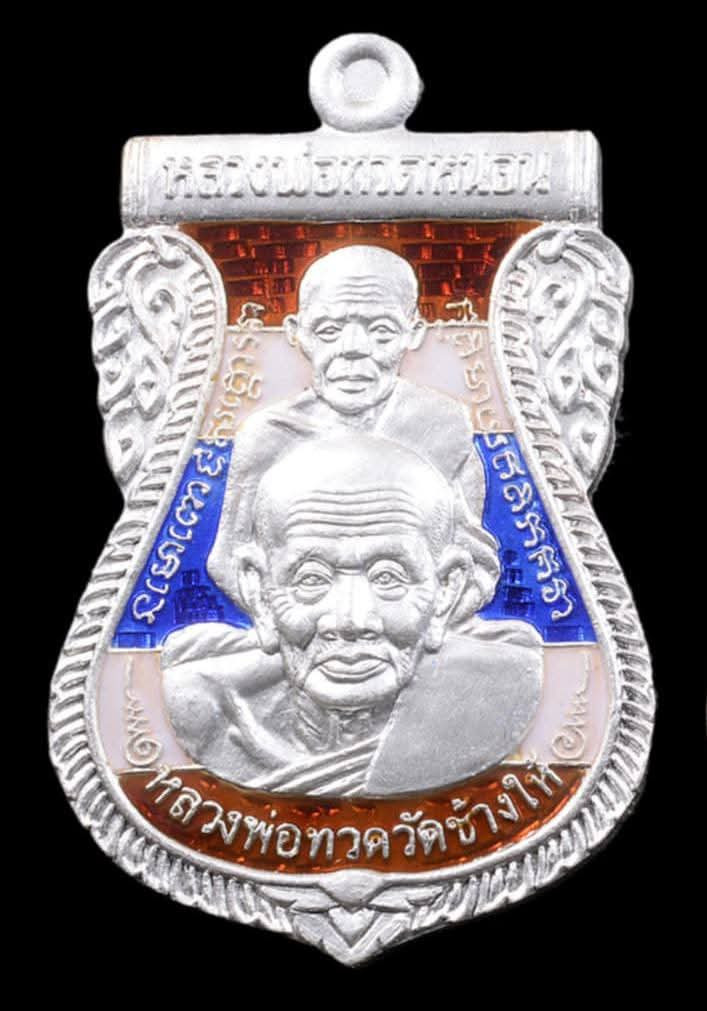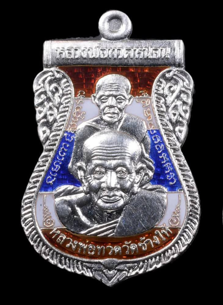 หลวงพ่อทวด หลวงพ่อทอง วัดสำเภาเชย รุ่นแซยิด 93 เหรียญพุทธซ้อน พิมพ์กรรมการใหญ่ เนื้อเงินลงยา พื้นน้ำเงิน จีวรเหลือง |