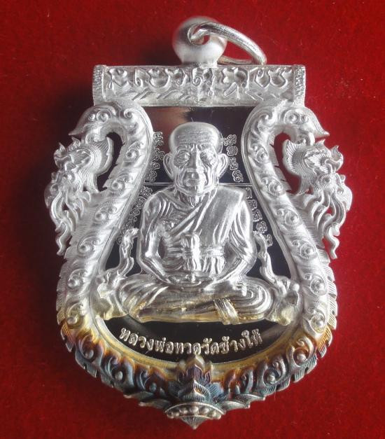 หลวงพ่อทวด พิมพ์เตารีดกลางปั้มซ้ำ เนื้อนวะแก่เงิน รุ่นเจริญพร หลวงพ่อทอง วัดสำเภาเชย ปี 2554 เลข ๑๕๗๕ |