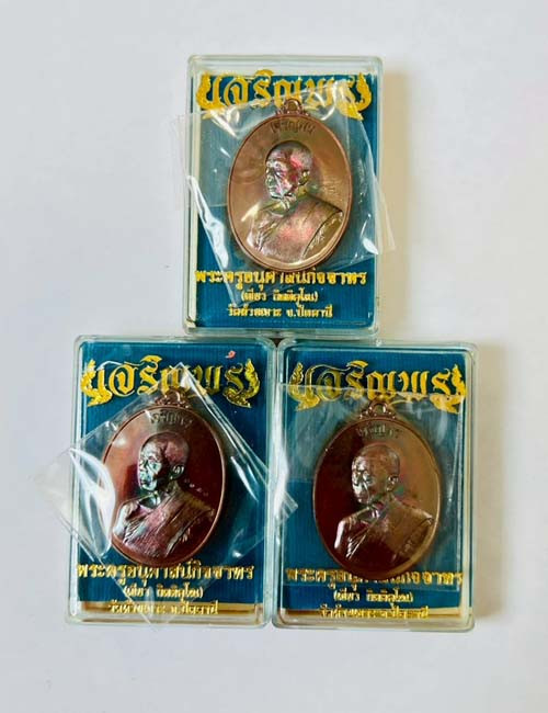 เหรียญหลวงพ่อทอง รุ่น เจริญพร 54 เนื้อทองแดงนอกลงยาสีธงชาติ เลข 4322 |