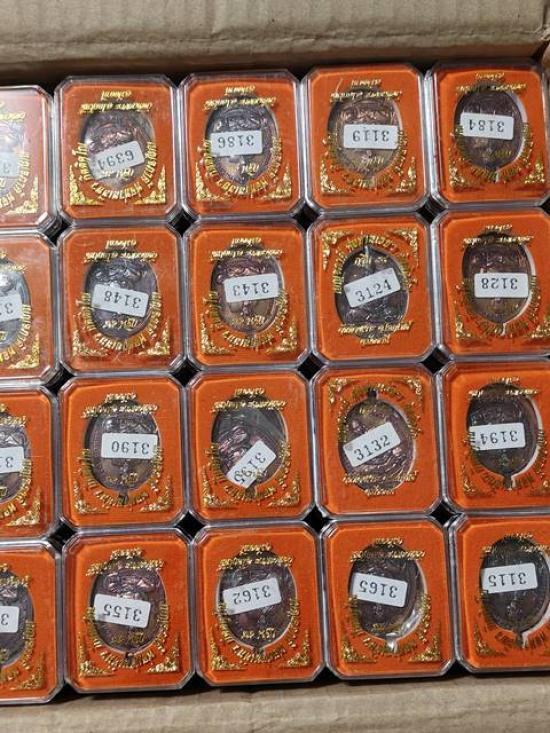 ยกลัง 100 องค์ มีกล่องครับ เนื้อทองแดง (พิมรูปใข่ครึ่งองค์หลังยันต์ห้า) แยกชุด รุ่น กฐิน 58 พ่อท่านเขียว วัดห้วยเงาะ อำเภอโคกโพธิ์ จังหวัดปัตตานี |