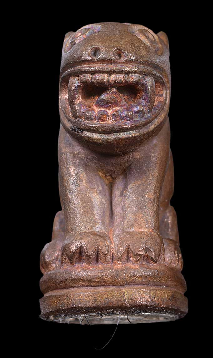 เคาะเดียวแดง อาจารย์ทองรุ่นทองฉลองเจดีย์ 2องค์ พิมพ์หัวโต เนื้อทองแดงรมดำ |