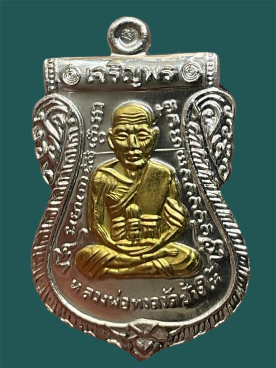 เหรียญเสมาหน้าเลื่อน หลวงปู่ทวด รุ่นเจริญพร หลังหลวงพ่อทองวั ดสำเภาเชย ปี54 เนื้อเงินหน้าทองคำ2หน้า |