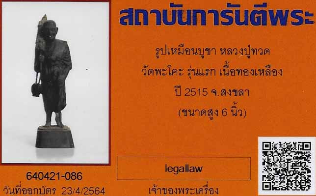 หลวงปู่ทวดพิมพ์ใหญ่ กรรมการ เนื้อว่านฝังเพชรหน้าทั่งและตะกรุด ปี 2536 หลวงปู่แดง วัดศรีมหาโพธิ์ จ.ปัตตานี รุ่นประสพการณ์ห้าแซะ |