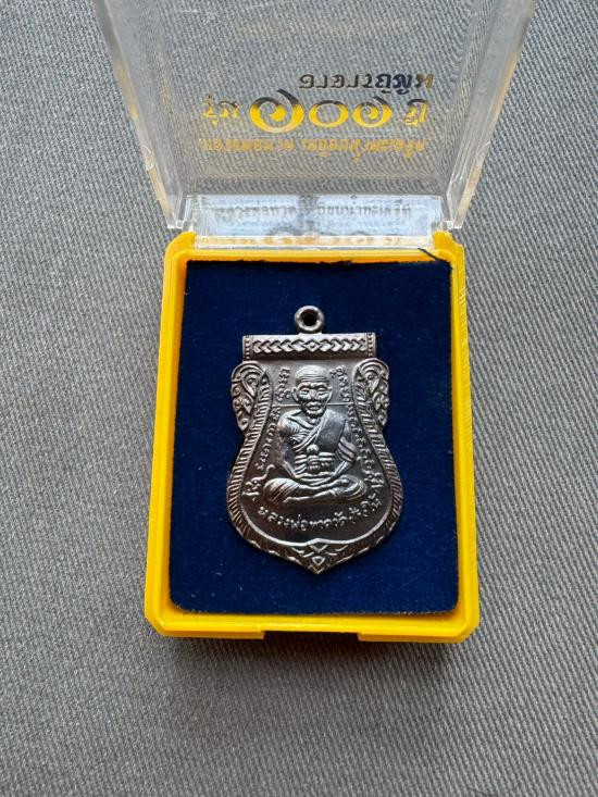 เหรียญหลวงปู่ทวด หลังหลวงปู่ทิม วัดช้างให้ รุ่นจันทร์สามสร้อย เนื้อกะไหล่เงิน ปี 2557 พร้อมกล่อง |