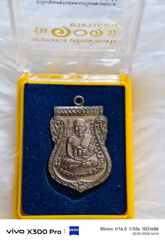 หลวงปู่ทวด 100 ปี เนื้อเงินลงยาแดง พระดีพิธีใหญ่ วัดช้างให้ ปี 2555 เลข 114 |