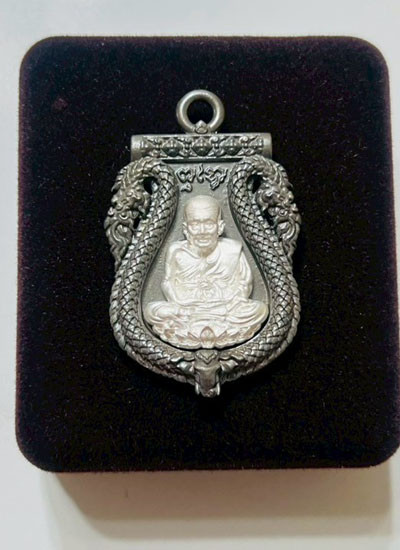 เม็ดแตงหลวงปู่ทวด อาจารย์หลังทิม รุ่น101ปีเนื้อเงินลงยาดำ |