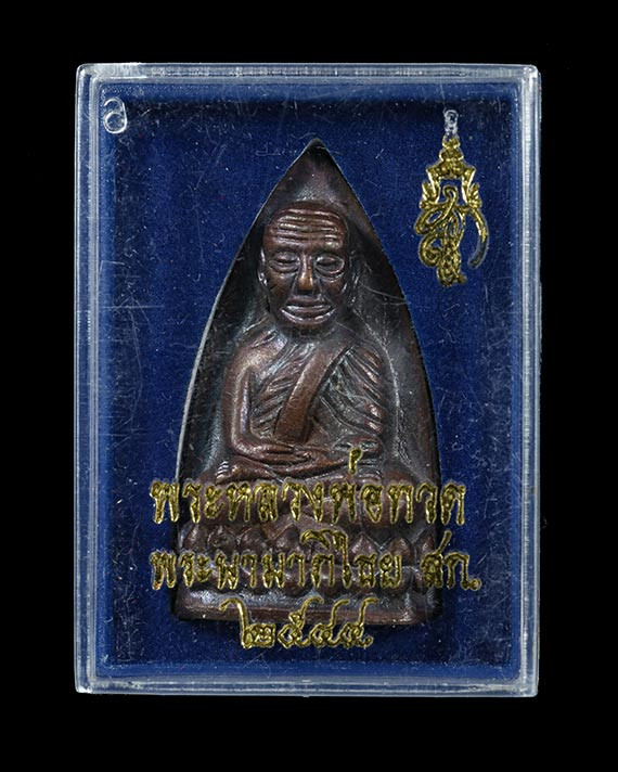 หลวงปู่ทวด พิมพ์พระรอด เนื้อว่าน งานวันเกิด ดร.ไมตรี บุญสูง ปี ๒๕๔๔ อาจารย์สายเขาอ้อ ร่วมเสก พร้อมกล่อง. |