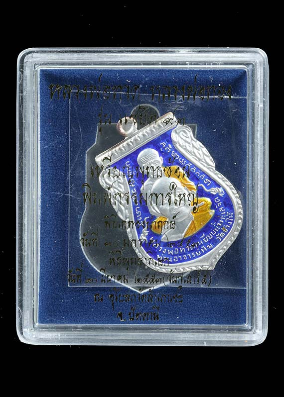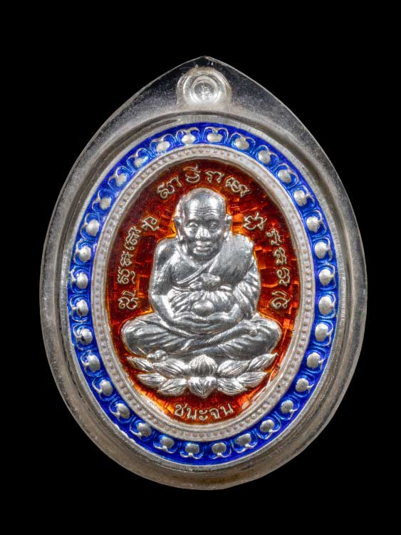 เหรียญหลวงพ่อทวดปลดหนี้ วัดสนธ์ จ.นครศรีธรรมราช เนื้อเงินลงยาแดง หมายเลข ๙ |