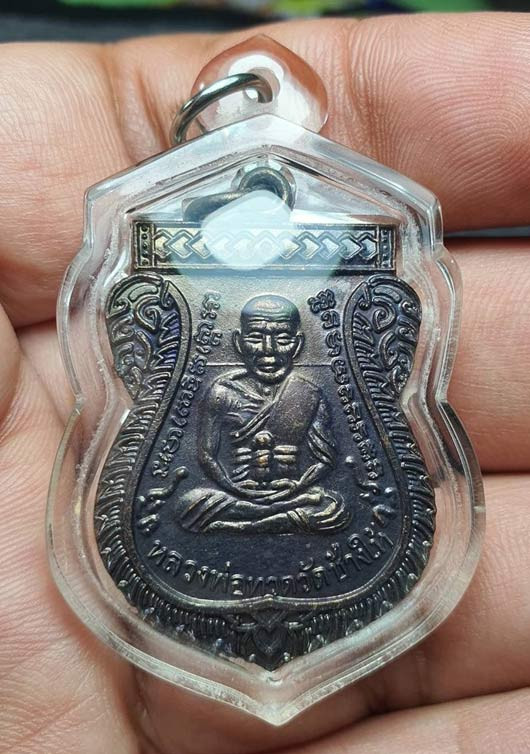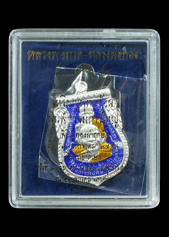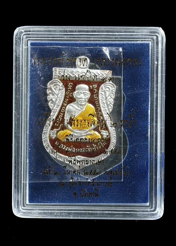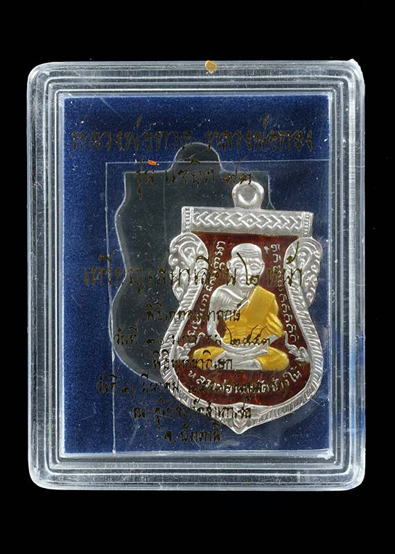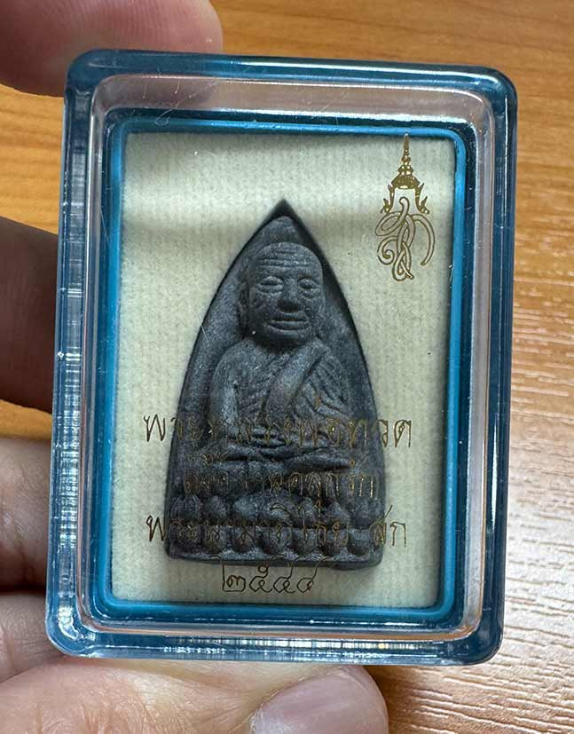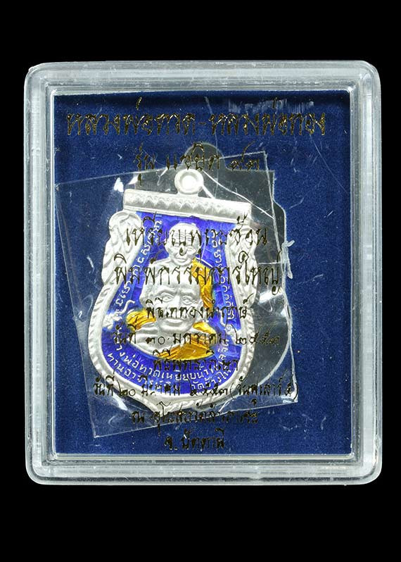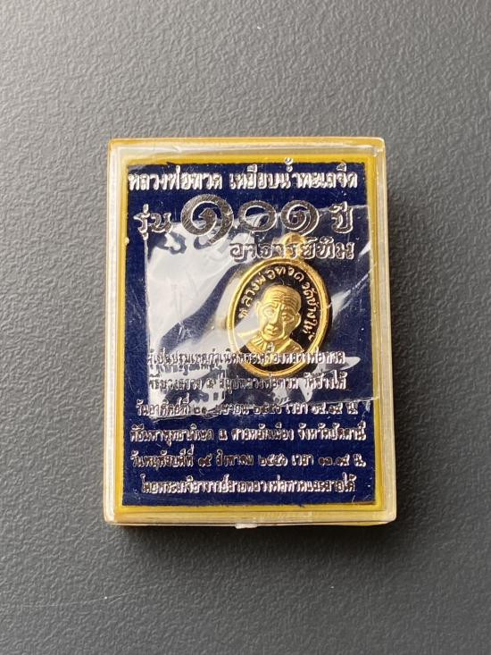 หลวงปู่ทวด หลังพระปรมาภิไธย สก. วัดห้วยมงคล พิมพ์พระรอด ปี 2544 กล่องเดิม |