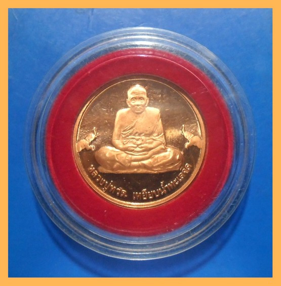 เหรียญหลวงพ่อทวดหลังพระนามาภิไธย สก. วัดห้วยมงคล ออกปี 47 พร้อมกล่องเดิม |