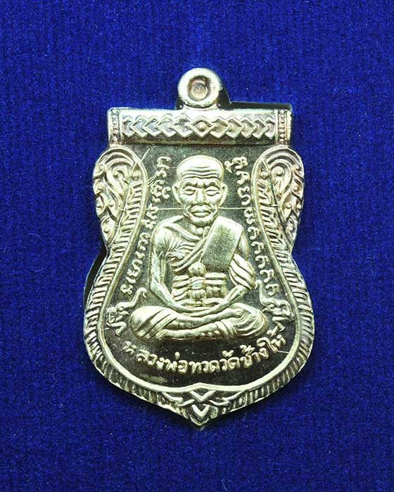 หลวงปู่ทวด อาจารย์ทิม เหรียญเสมาหน้าเลื่อน เนื้อทองขาวชุบทอง แจกกรรมการ โค๊ด ก ตอก 2 ตอกโค๊ด รุ่น 101 ปี อาจารย์ทิม ปี 2556 |