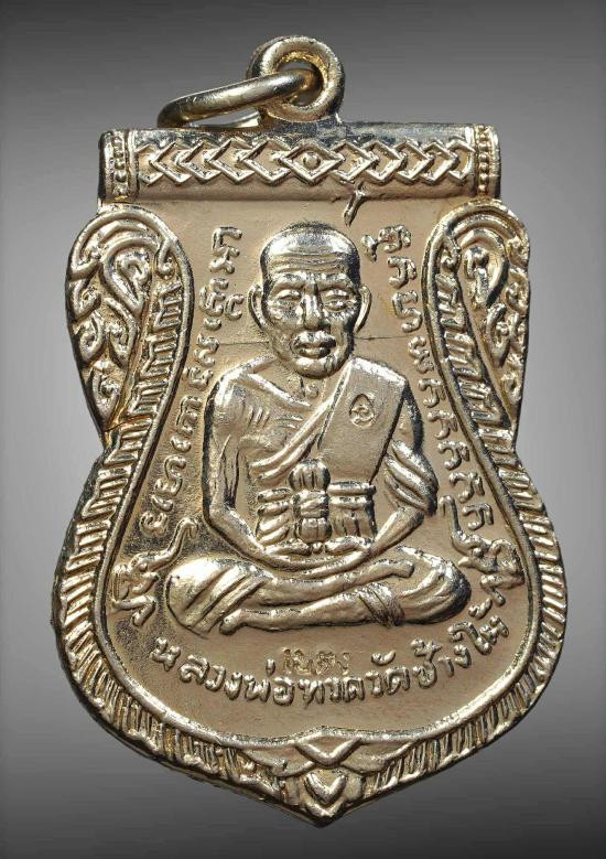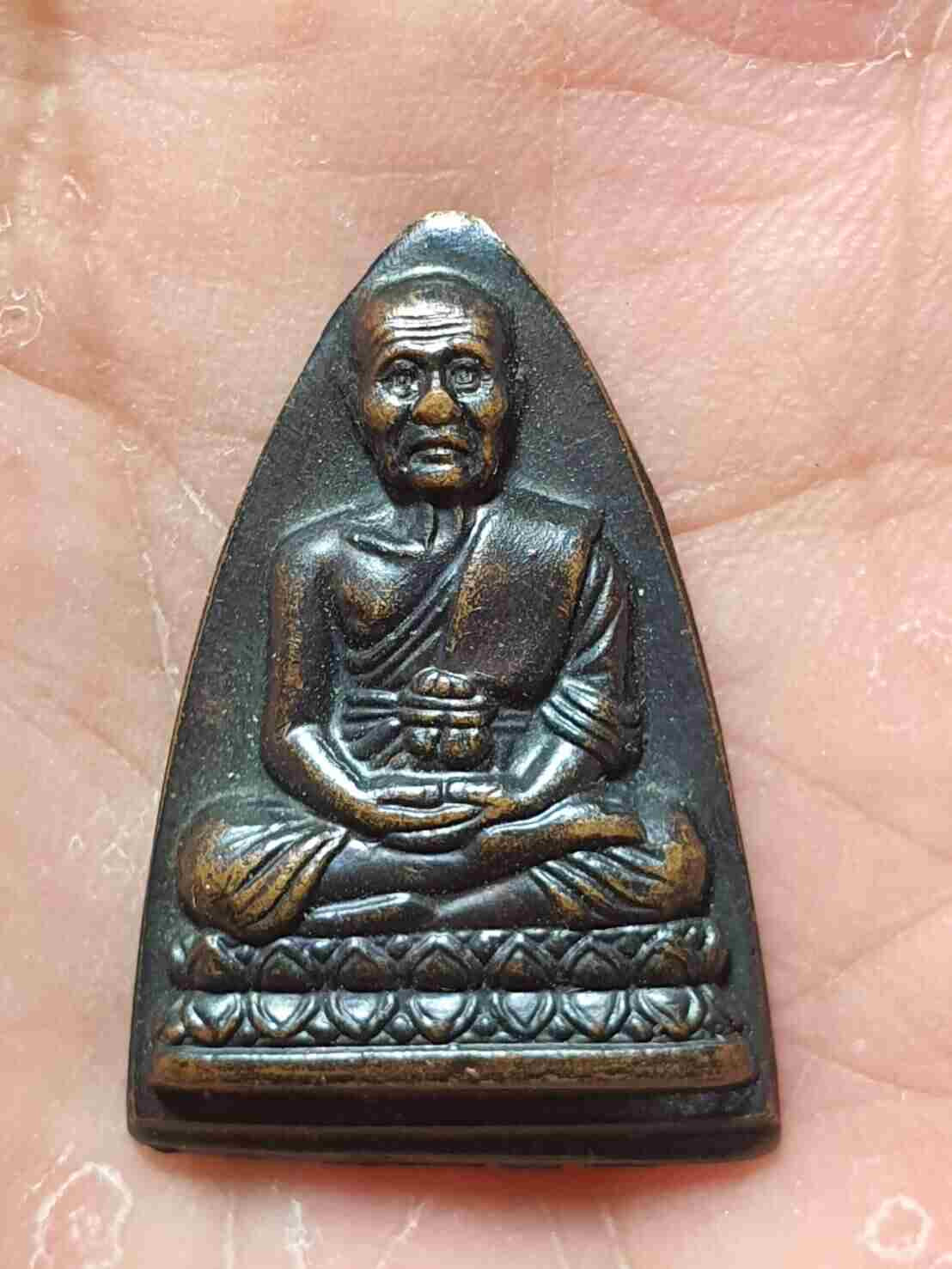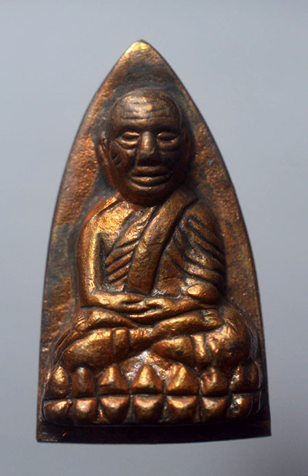 พระหลวงปู่ทวดพิมพ์เตารีด(มีหู) พิมพ์กลาง หลังตัวหนังสือ(แจกรัฐปีนัง) เนื้อทองแดง ปี2524 |