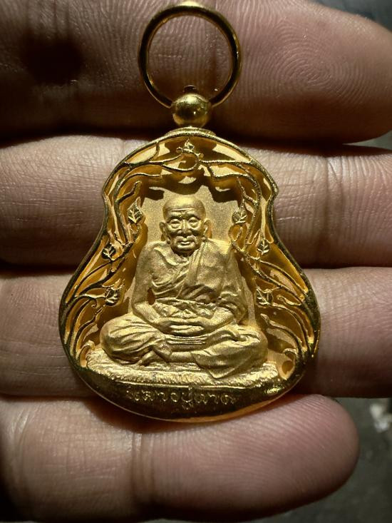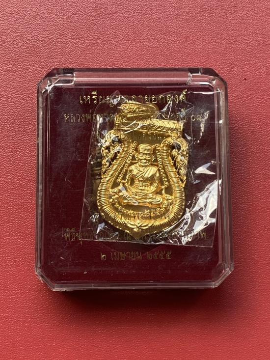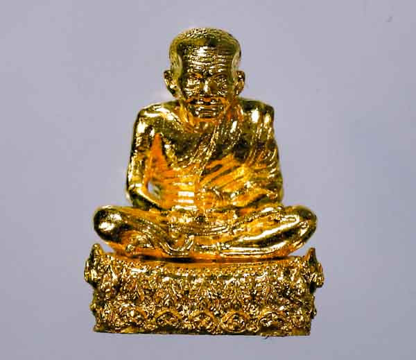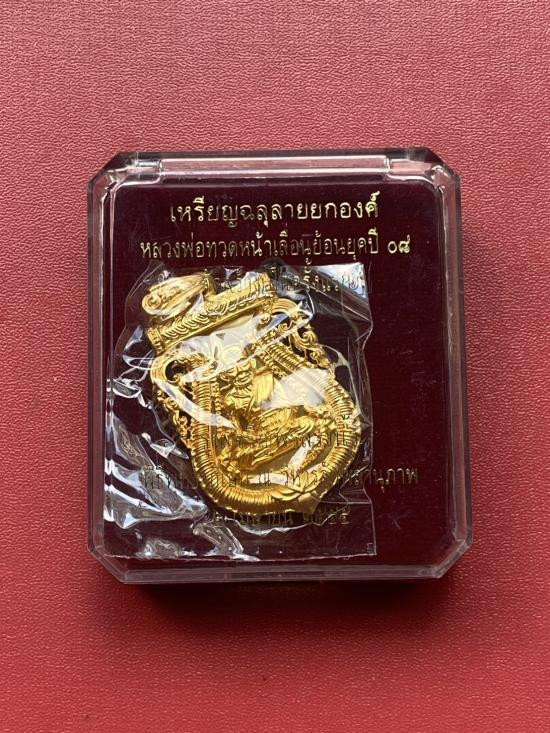 เคาะเดียวแดง หลวงปู่ทวด พิมพ์หน้าเลื่อน รุ่น เจริญพรสรงน้ำ เลข2 เนื้อ บรอนชุบทอง |