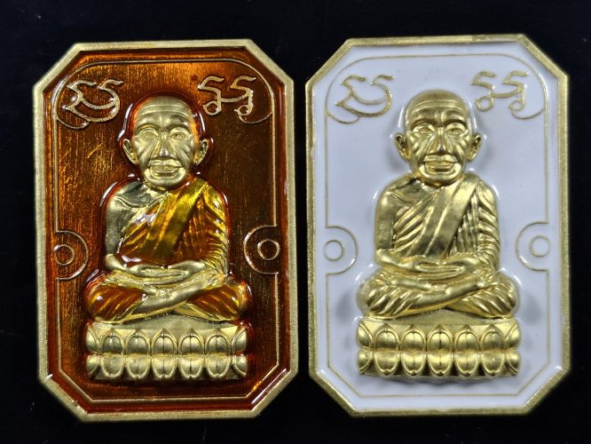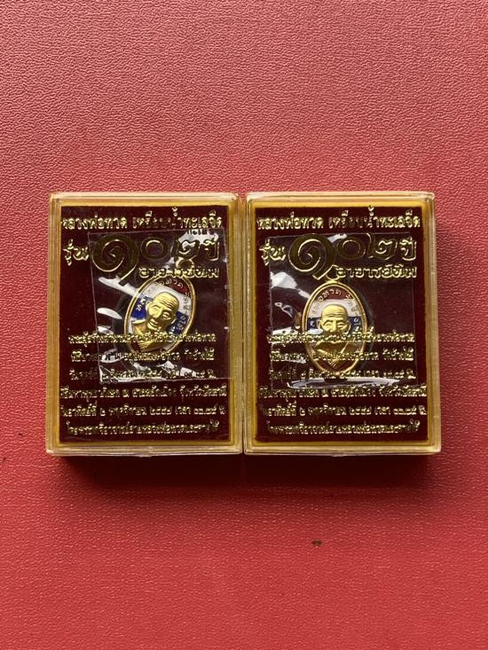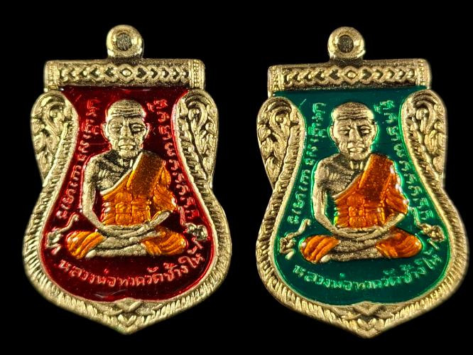 เคาะเดียวแดง เม็ดแตง 2องค์หลวงปู่ทวด รุ่น101ปี เนื้อ ชุบทองลงยาแดง |