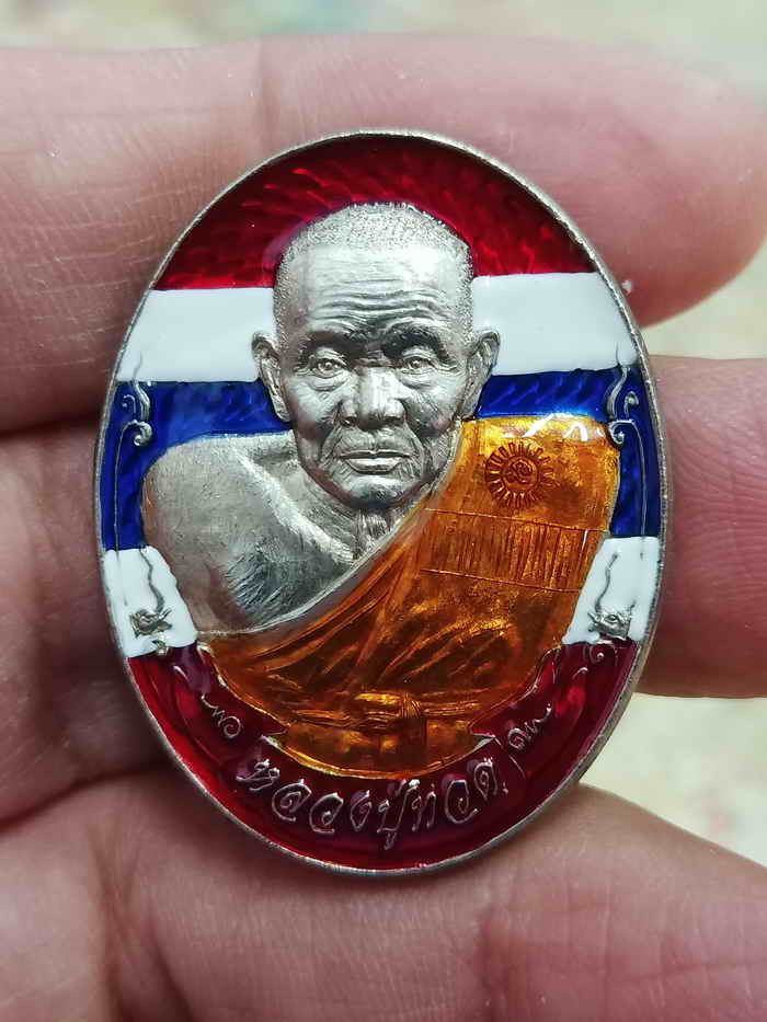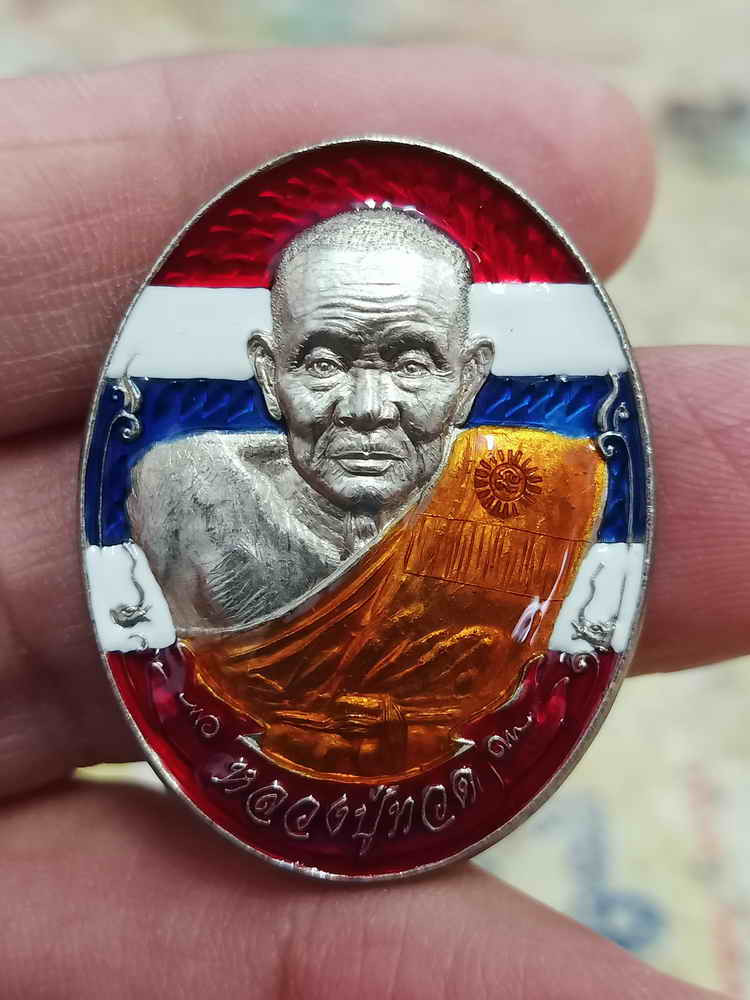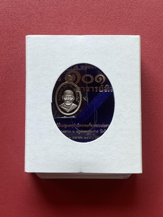 เคาะเดียวแดง เม็ดแตง หลวงปู่ทวด รุ่น101ปี อาจารย์ทิม เนื้อ เงินลงยาสีน้ำเงิน |