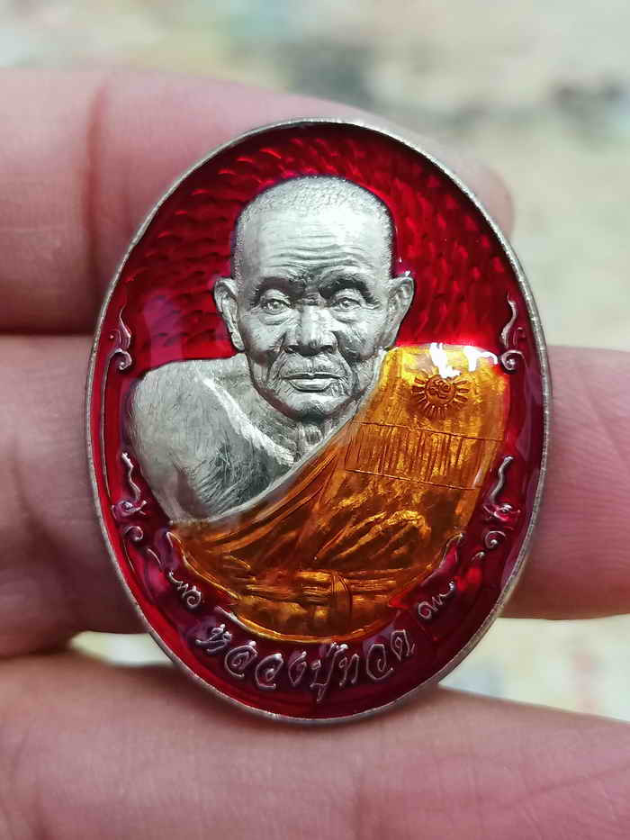 เคาะเดียวแดง เม็ดแตง หลวงปู่ทวด รุ่น432ปีชาตกาล อาจารย์ทิม เนื้อ เงินลงยาสีแดง |